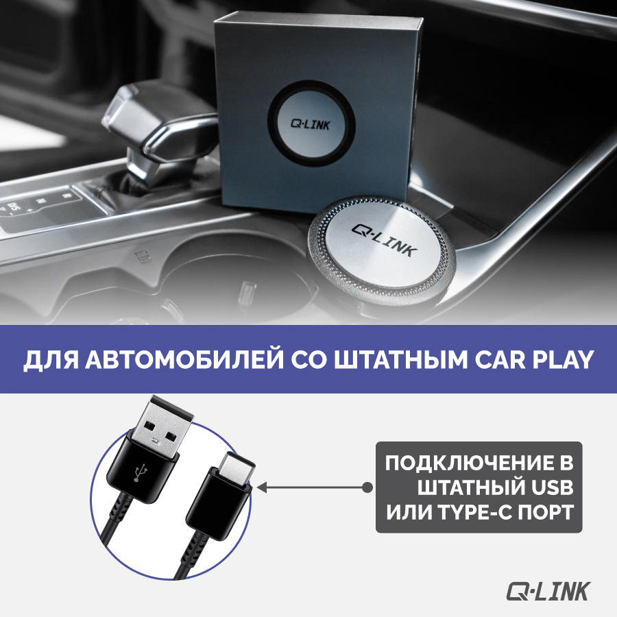 Q-Link подключается к штатной автомобильной системе через оригинальный USB порт.